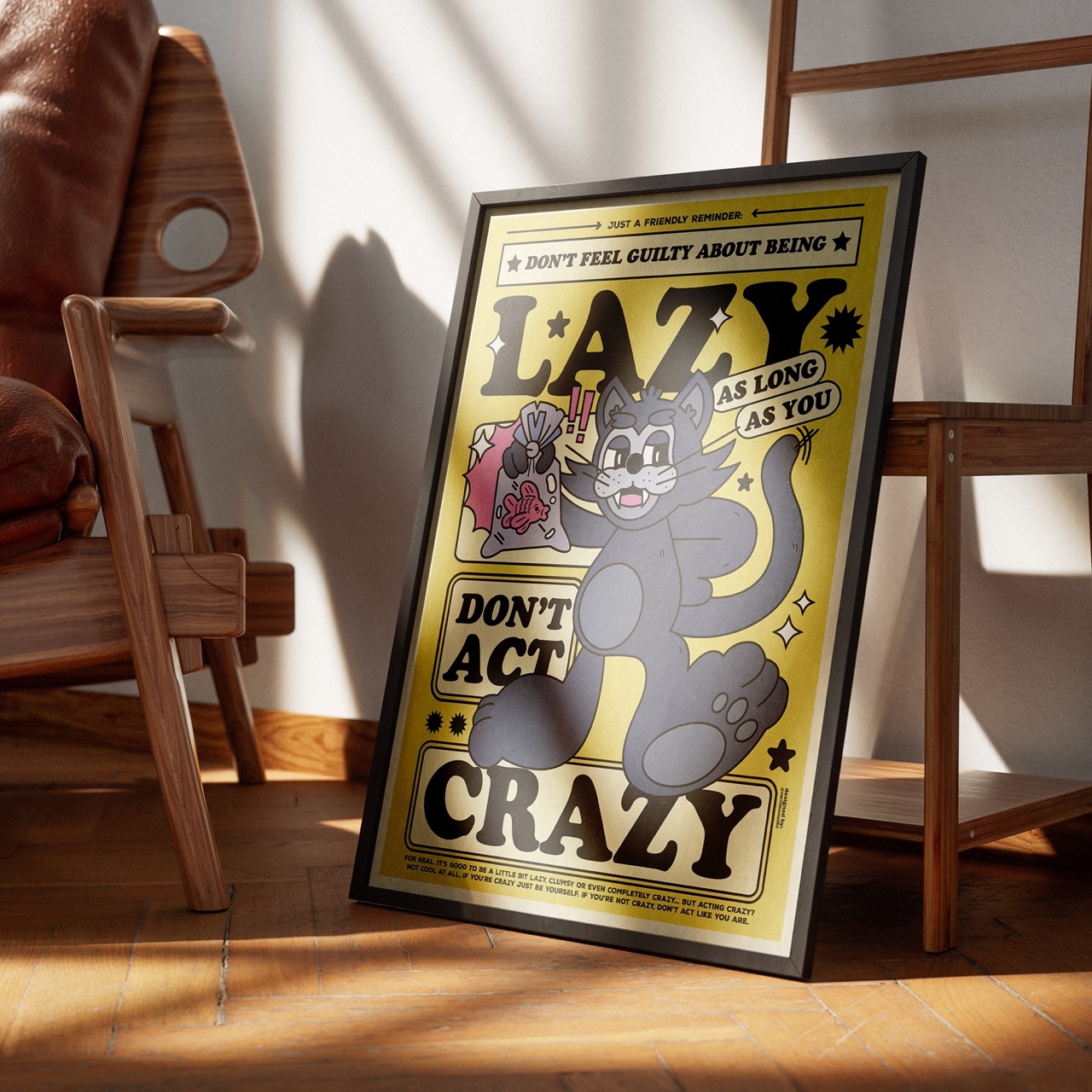 Plakat „LAZY CRAZY” dla miłośnika kotów i prokrastynacji!