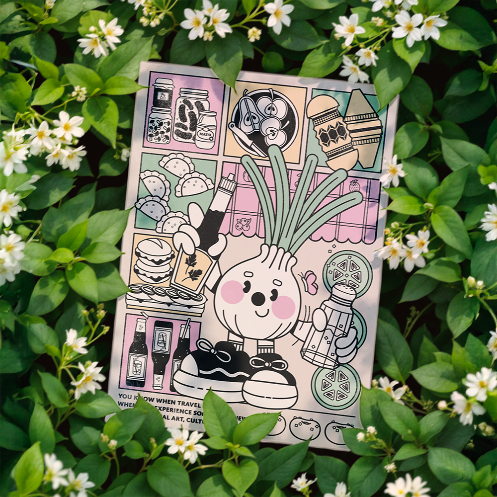 Najlepszy prezent z Polski? No zdecydowanie plakat z wielką cebulą, która trzyma miecz i tarczę polskiej kuchni, czyli Maggi i sól. Pastelowe kolorki inspirowane blokami z wielkiej płyty, fragment ceraty jak z babcinego stołu, słoiczki, nóż do jabłka. Kwintesencja polskiej kultury w oldschoolowym wydaniu.