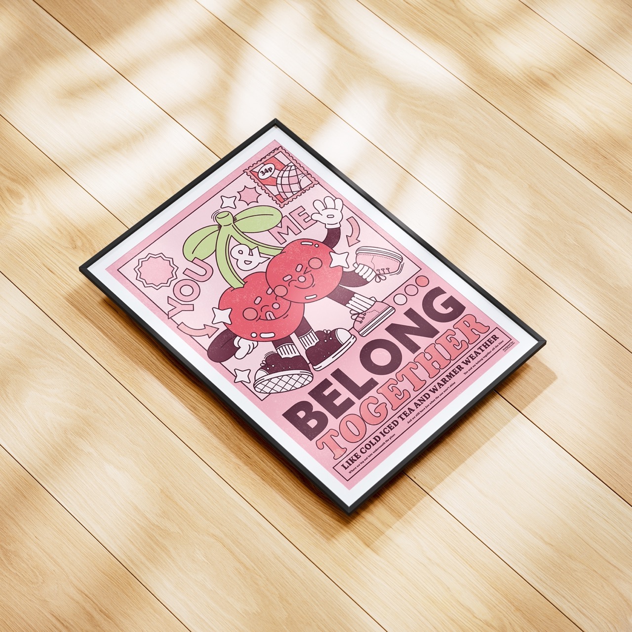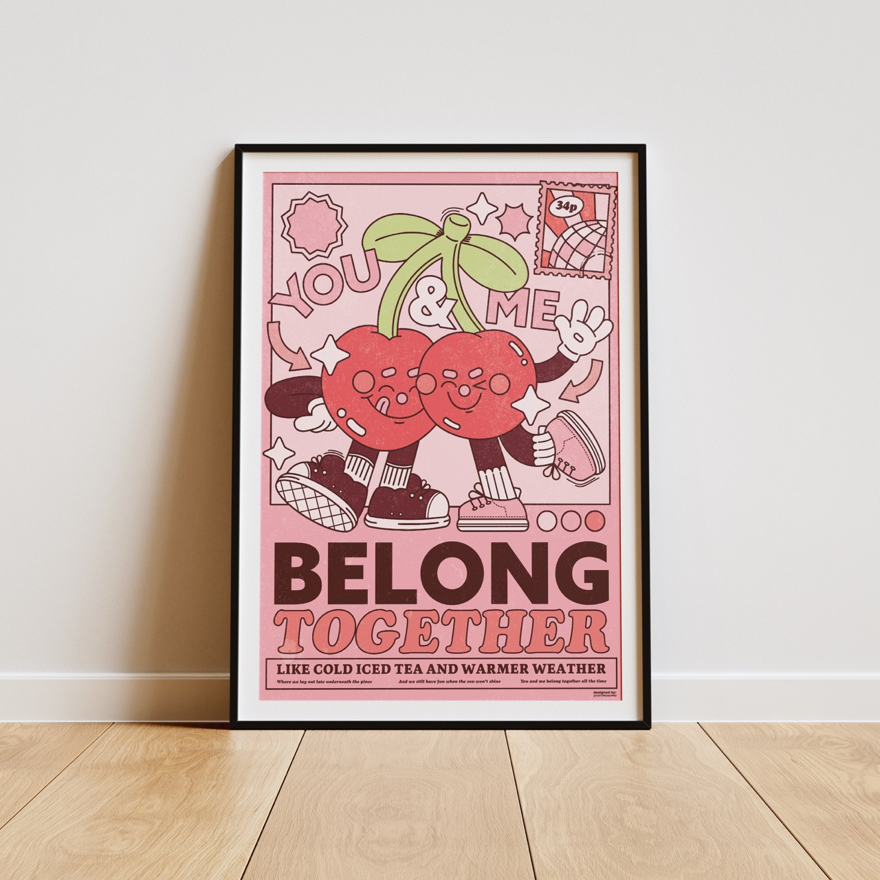 Plakat idealny dla pary, małżeństwa lub najlepszych przyjaciółek… kogoś, kto jest połączony ogonkiem na zawsze i nie wyobraża sobie rozłąki. Apetyczne kolorki, słodkie wisienki, disco retro look. Jak nie pokochać takiego słodziaka!